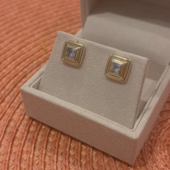 Two Sea-blue AA quality natural aquamarine totaling 0.50 carats. Each earring measures 10.50mm across.