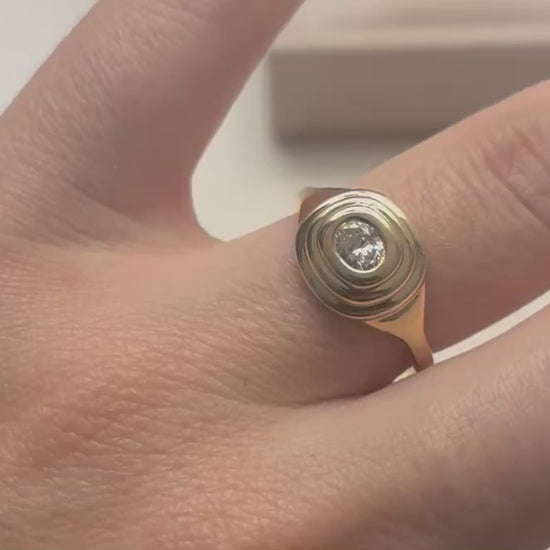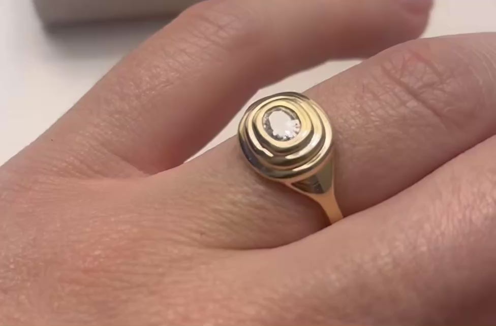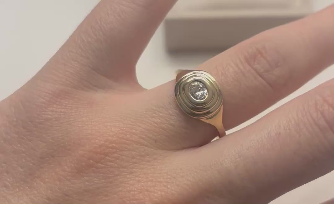 Natural diamond totaling 0.35 carats, ring measures 12.15mm across.
